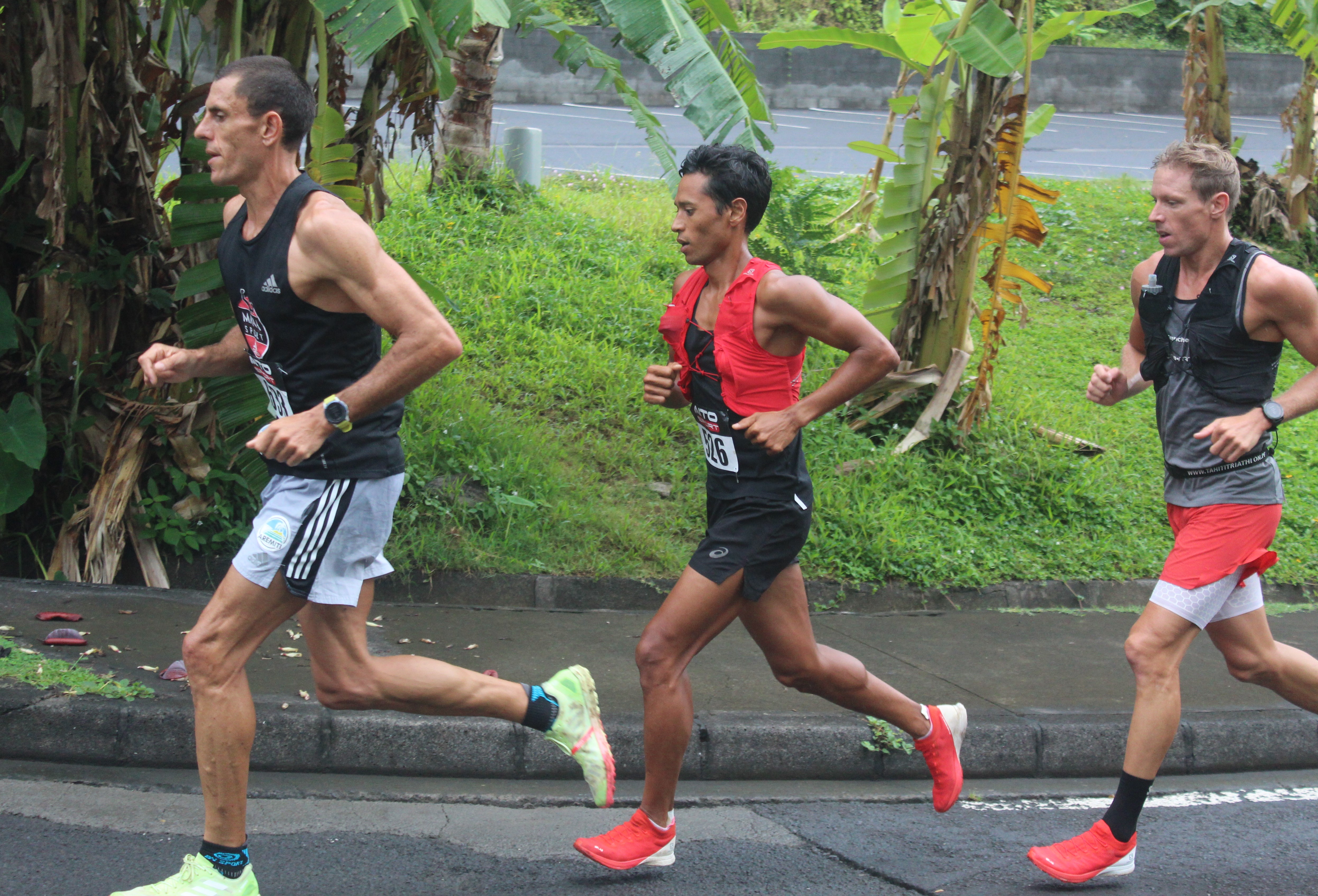 12 km au menu des traileurs avec un parcours qui les a conduit vers la Croix sur les hauteurs de la Mission puis ils ont du poursuivre jusqu’au chemin du Rosaire où était fixé le demi-tour. Même parcours pour les marcheurs mais avec un demi-tour placé à la Croix pour une distance de 5 km. Le fort dénivelé a été exigeant sur la portion aller car fortement grimpant et à contrario plus aisé au retour car descendant jusqu’à la ligne d’arrivée fixée sur le parking du presbytère de l’église Maria No Te Hau. Les conditions climatiques ont servi la cause des participants avec une température agréable pour la pratique de la course à pied.