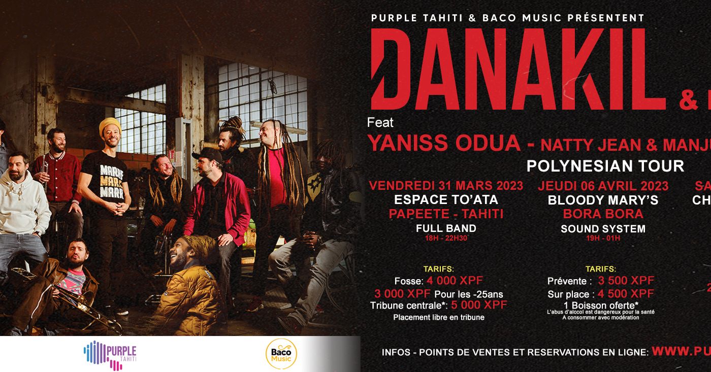 TAHITI, le 27 mars 2023 - Le groupe de reggae Danakil est en tournée en Polynésie avec ses “friends”, Yaniss Odua et Natty Jean. S’ils ont l’habitude de se croiser lors de festival, c’est la première fois que ces artistes seront réunis sur une même scène.