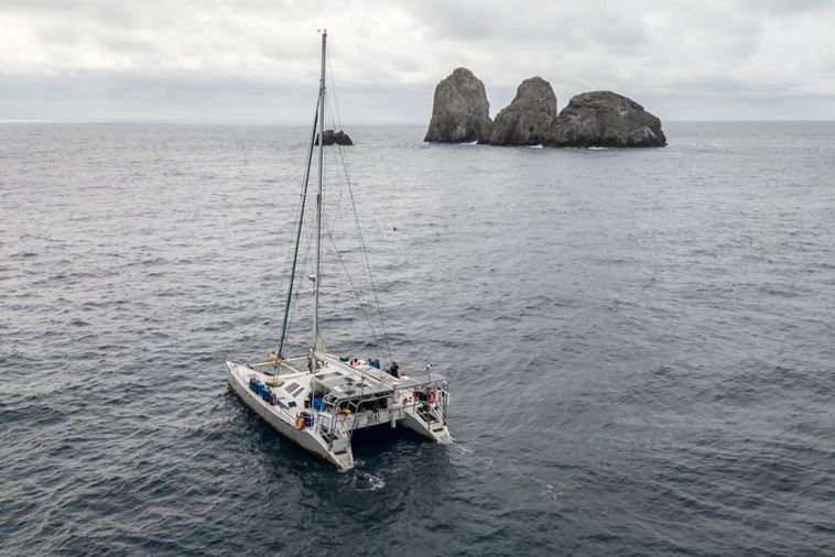 Le catamaran, avec à son bord des activistes écologistes, lutte contre les bateaux de pêche illégaux qui braconnent et massacrent les squales à l'intérieur de ce parc naturel marin.