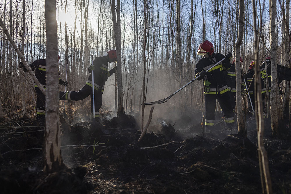 "Ils livrent un très dur combat... Ils n'ont pas dormi depuis trois jours, ils n'ont fait que lutter pour arrêter le feu, jusqu'à ce que des renforts arrivent, hier", a dit l'enseignante et agricultrice de 56 ans du village de Wolka Piaseczna.