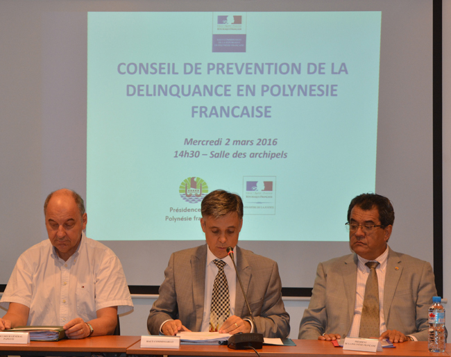 Le conseil de prévention de la délinquance de la Polynésie française est coprésidé par le Haut commissaire, Lionel Beffre ; le procureur général François Badie et le président du Pays Edouard Fritch.