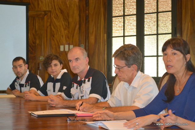 La ministre de la santé Béatrice Chansin avec les trois médecins experts de la mission Eprus arrivés ce dimanche en Polynésie française. La mission d’expertise durera toute la semaine.