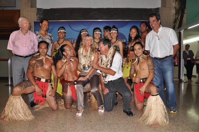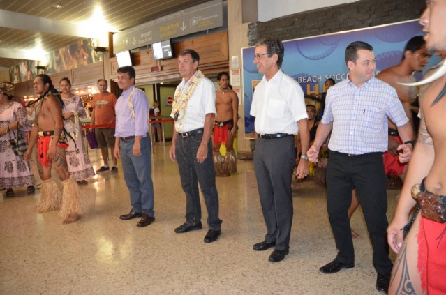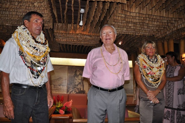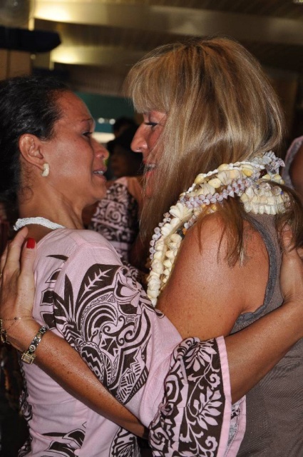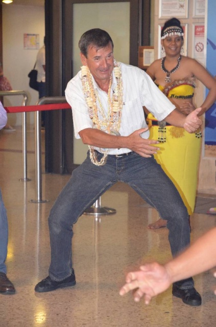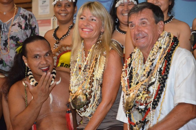 Le groupe marquisien Te Kaipeka o Te Kaikaiana a offert une prestation au public. Monsieur et Madame LAFLAQUIERE se sont prêtés une dernière fois au difficile exercice du haka et de la danse de l'oiseau, au son des pahu marquisiens. Avant de s'envoler pour la métropole, le Haut-Commissaire a exprimé avec beaucoup d'émotion son attachement aux polynésiens et a redit combien ce séjour a compté pour lui et sa famille.