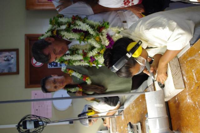 Le Haut-Commissaire s’est ensuite rendu au Centre d’Education au Développement (CED), où 40 élèves suivent des enseignements techniques, tels que la mécanique, la menuiserie, l’apiculture ou la gravure sur nacre. Jean-Pierre Laflaquière a pu assister au travail des élèves.