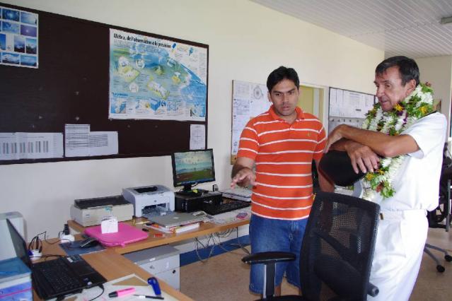 Le déplacement du Haut-Commissaire aux Gambier s’est terminé par la visite de la station Météo France, implantée depuis 1978 sur l’île, où l’équipe effectue les mesures d’altitude et les observations au sol.