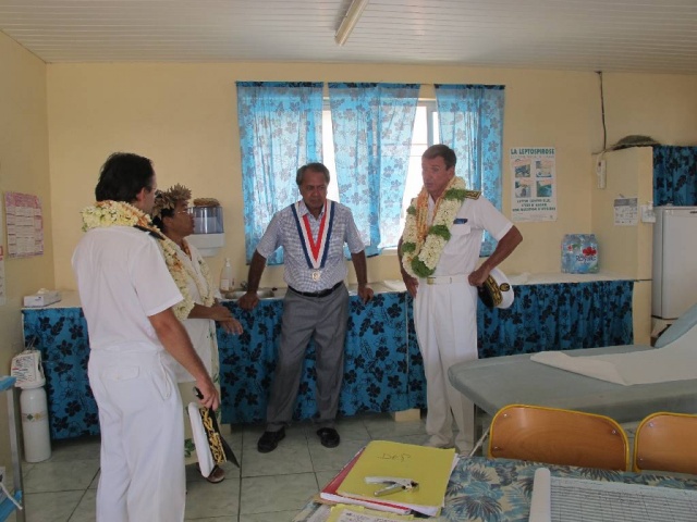Le Haut-Commissaire lors de sa visite de l’infirmerie, s’est longuement entretenu avec l’infirmier des problèmes rencontrés sur l’atoll et des projets de télé-médecine en cours qui permettraient une prise en charge plus efficace des patients des communes éloignées.