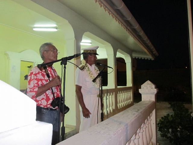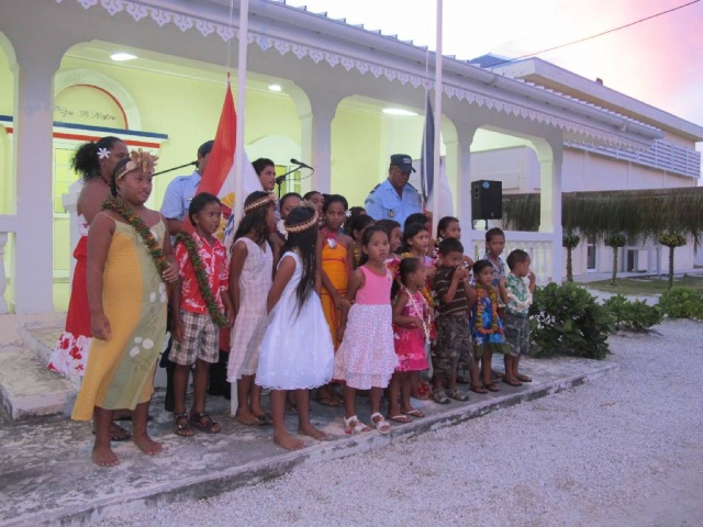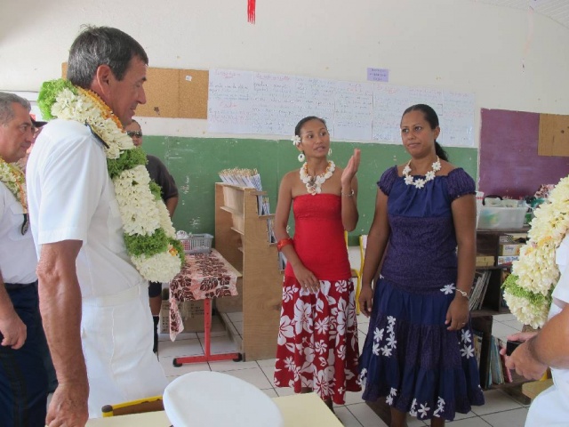 Le Haut-Commissaire était accompagné de l’administrateur d’Etat, M. Eric SACHER, du commandant la gendarmerie pour la Polynésie française, le Colonel Patrick VALENTINI, d’un représentant du Service national, le Maréchal des logis chef Yannick BONIN, du chef de l’arrondissement bâtiment du Service de l’Equipement, Jean-Pierre CARLOTTI et du Président de l’académie Paumotu, M. Jean KAPE.