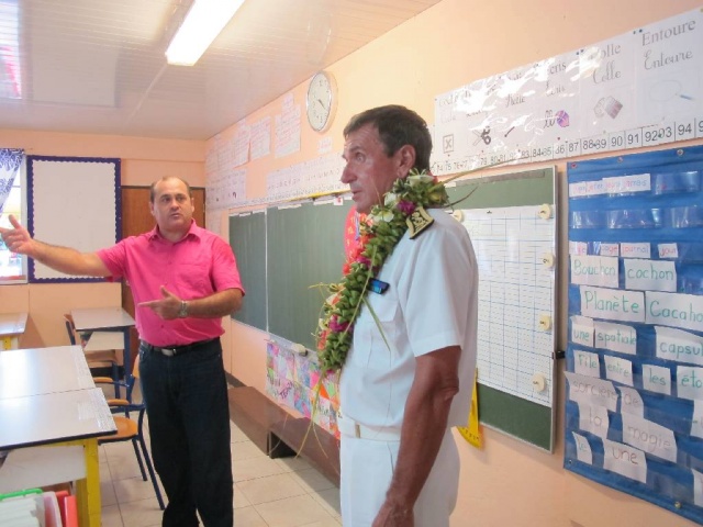 Le Haut-Commissaire a constaté le bon état général de l’école malgré un problème de mise aux normes électriques. Un « chantier école » du Groupement du Service Militaire Adapté (GSMA) interviendra en juillet prochain pour mettre celle-ci en conformité, les matériaux étant commandés sur les fonds propres de la commune.