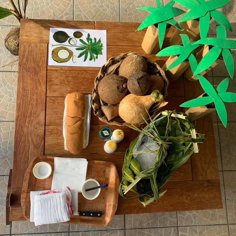 Samedi 17 avril, au centre Vaima. “Nous avons d’abord parlé de la noix de coco, de l’arbre, la fleur puis les différents dessins de la noix”, raconte Margot. Elle anime des ateliers pours les enfants et leurs parents. La noix de coco est le fruit du cocotier qui est un arbre de la famille des palmiers.