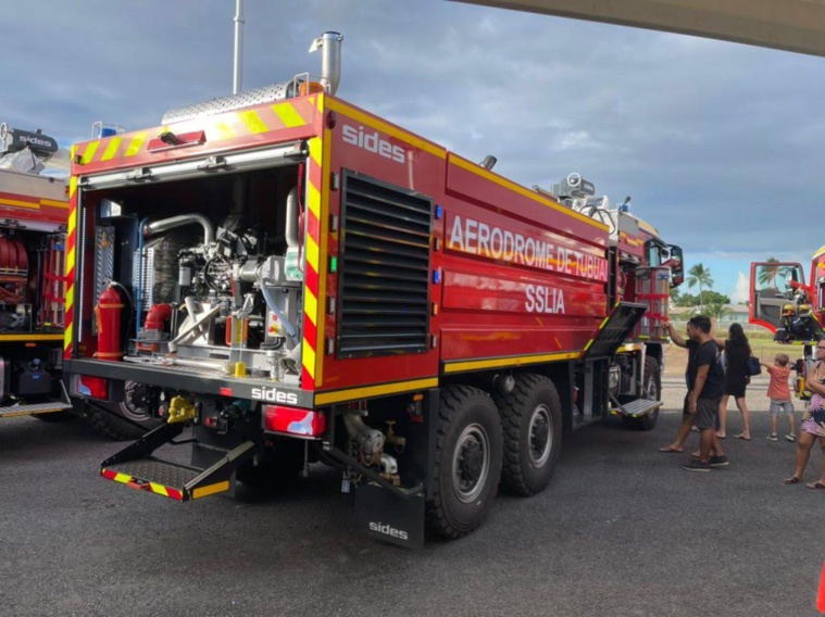 Jeudi après-midi, trois nouveaux véhicules ont été réceptionnés pour améliorer l’équipement des aérodromes de Huahine, Hiva Oa et Tubuai. Il s’agit de trois VIM 64 P2.5 d’une capacité de 6 400 litres d’eau équipés d’un canon d’une portée de 61 mètres, d’une lance à mousse d’un débit de 450 litres par minute, d’une lance à mousse dévidoir, d’une lance à poudre.