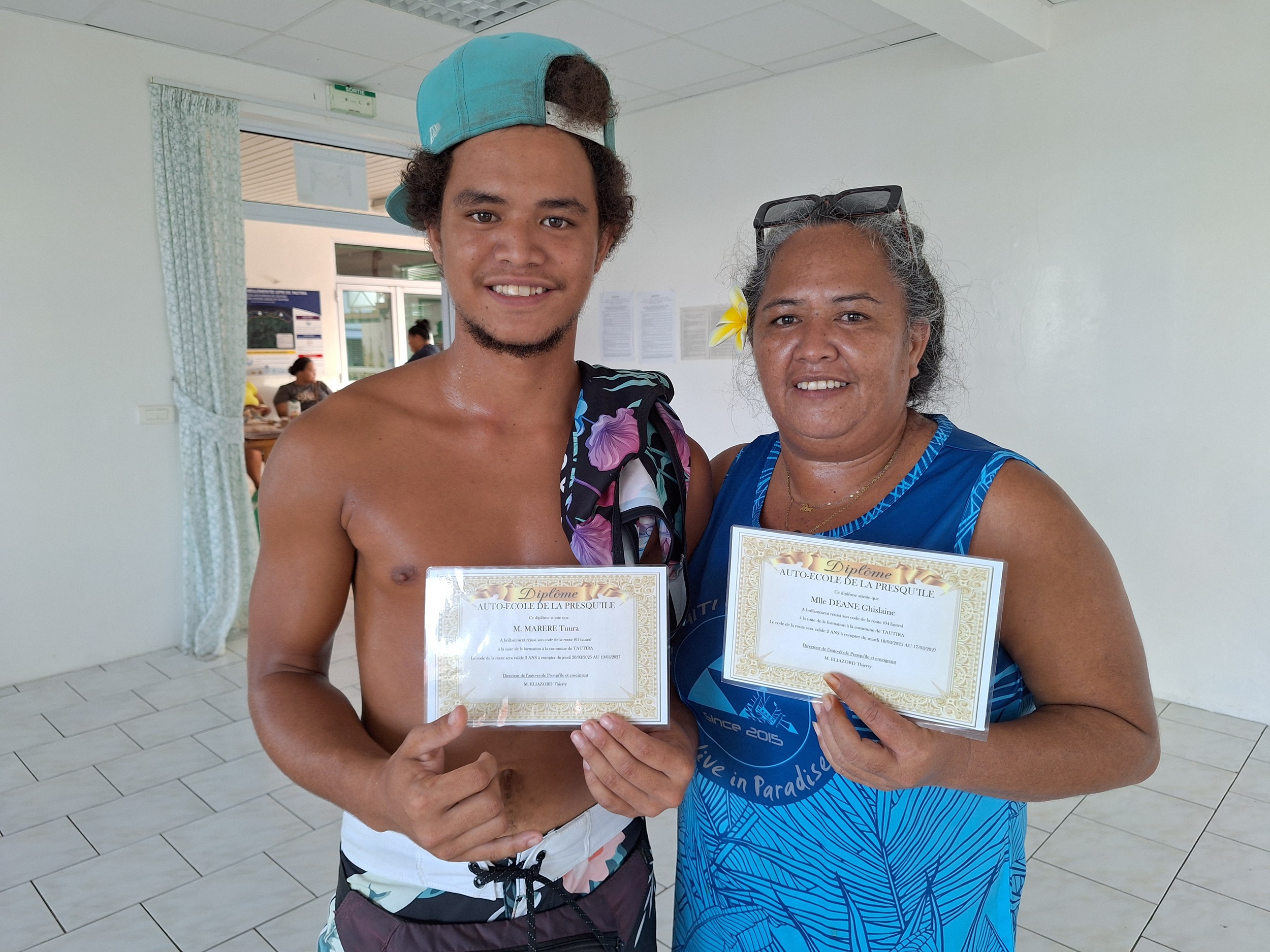 Cette accessibilité a été décisive pour Tuura Marere, 18 ans. “Je dépends de ceux qui ont le permis dans la famille : je veux être plus autonome, surtout que je travaille à Mataiea. Les cours, c’était difficile, mais je suis venu tous les soirs. Sans cette organisation, je n’aurais pas pu le faire”, confie le jeune homme, lauréat au même titre que sa mère, Poerava Marere, 43 ans. Même motivation pour Alison Tiare, 34 ans : “Je m’occupe de mon grand-père qui est malade et j’ai besoin de pouvoir le conduire à ses rendez-vous. Pareil pour emmener les enfants à l’école. Pour mon conjoint, c’est devenu indispensable pour trouver du travail”.