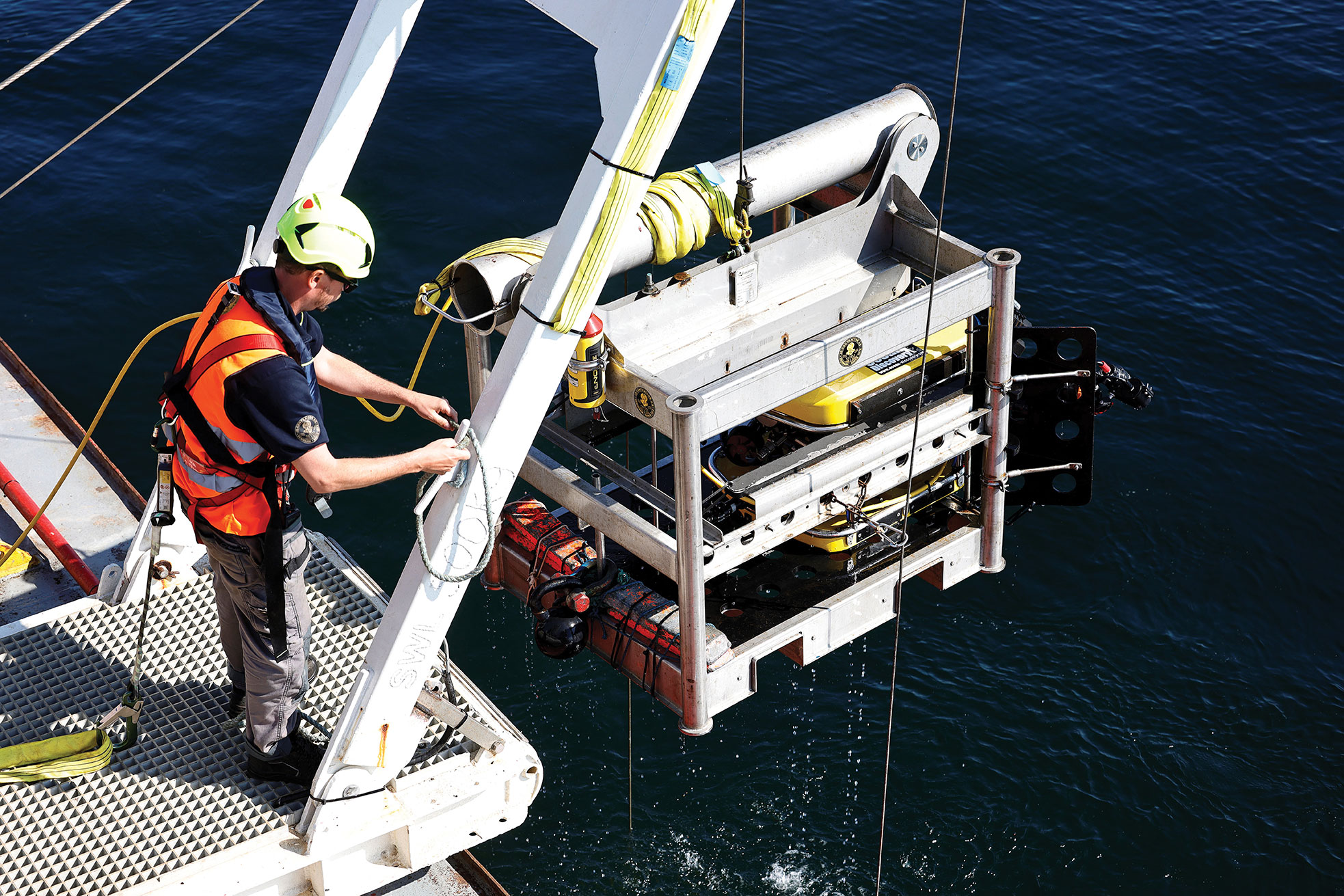 Si un problème est détecté, le ROV peut être déployé pour procéder aux réparations.