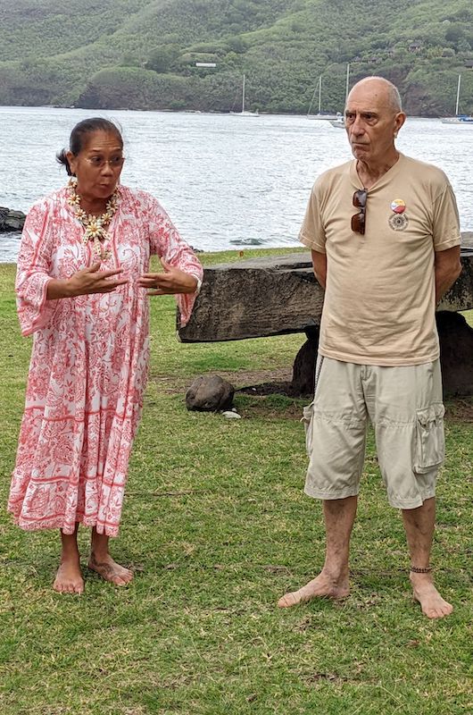 Cette semaine à Nuku Hiva, c’est le site de Temehea à Taiohae qui a été choisi pour réconcilier les enseignants avec leur patrimoine. “Nous avons commencé par une activité de lecture à voix haute, la lecture prosodique, en français, en marquisien et en anglais, pour amener les enseignants d’abord à s’approprier l’espace, le patrimoine et ensuite à pouvoir sortir de leur zone de confort. Car en effet, on demande aux enfants de déclamer en français et en marquisien, mais est-ce que nous avons, nous en tant qu’adultes, été placés dans ces situations ? Pour moi, vivre ces situations dans des lieux autres que la salle de classe et devant ses pairs ce n'est pas facile. Il y a donc, là, pour les enseignants, une possibilité de se dépasser et, du même coup, de provoquer de l’engouement dans la préparation et la lecture du texte à déclamer en cherchant dans le regard des pairs un sourire ou une émotion partagée.”