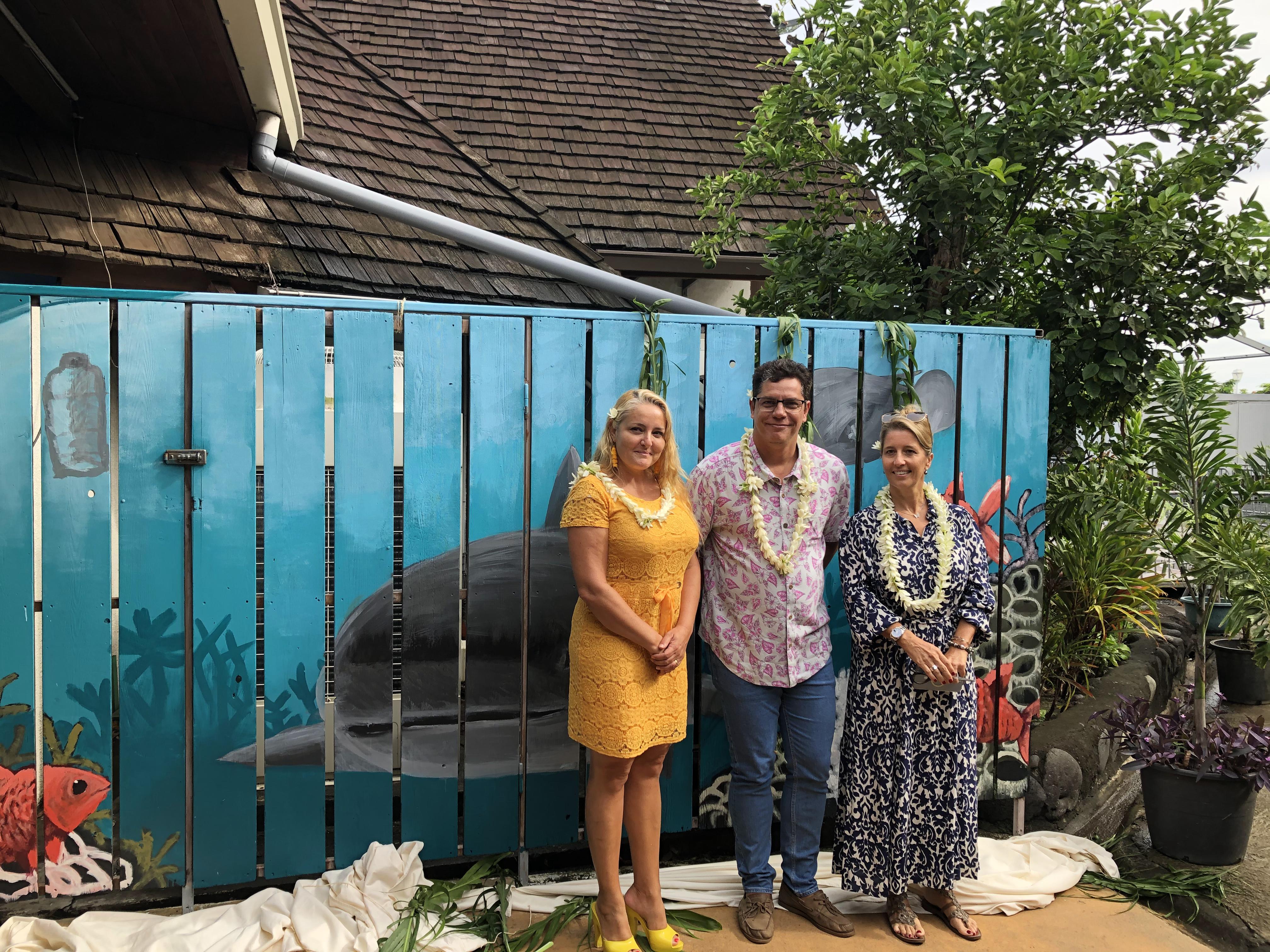La direction territoriale de la Protection Judiciaire de la Jeunesse (PJJ), le ministère de la Justice, et la Fédération des associations de protection de l'environnement (Fape), ont célébré l’achèvement des “ateliers pratiques de l'écologie” lundi matin. Ces ateliers ont réuni des jeunes suivis par la DPJJ, du 7 novembre 2022 au 6 janvier 2023. Huit enfants ont eu l’occasion de participer à une quinzaine d’ateliers mis en place par la Fape. À l’issue de ces deux mois, quatre d’entre eux ont notamment co-réalisé une fresque sur les murs de la Maison de la culture, Te Fare Tauhiti Nui, accompagnés par l’artiste gaffeur Rival. L’œuvre réalisée est baptisée “l’appel du lagon”, “Te pi’i o te tairoto”. La peinture a été dévoilée à l’ensemble des acteurs du projet, lundi matin à 8 heures.