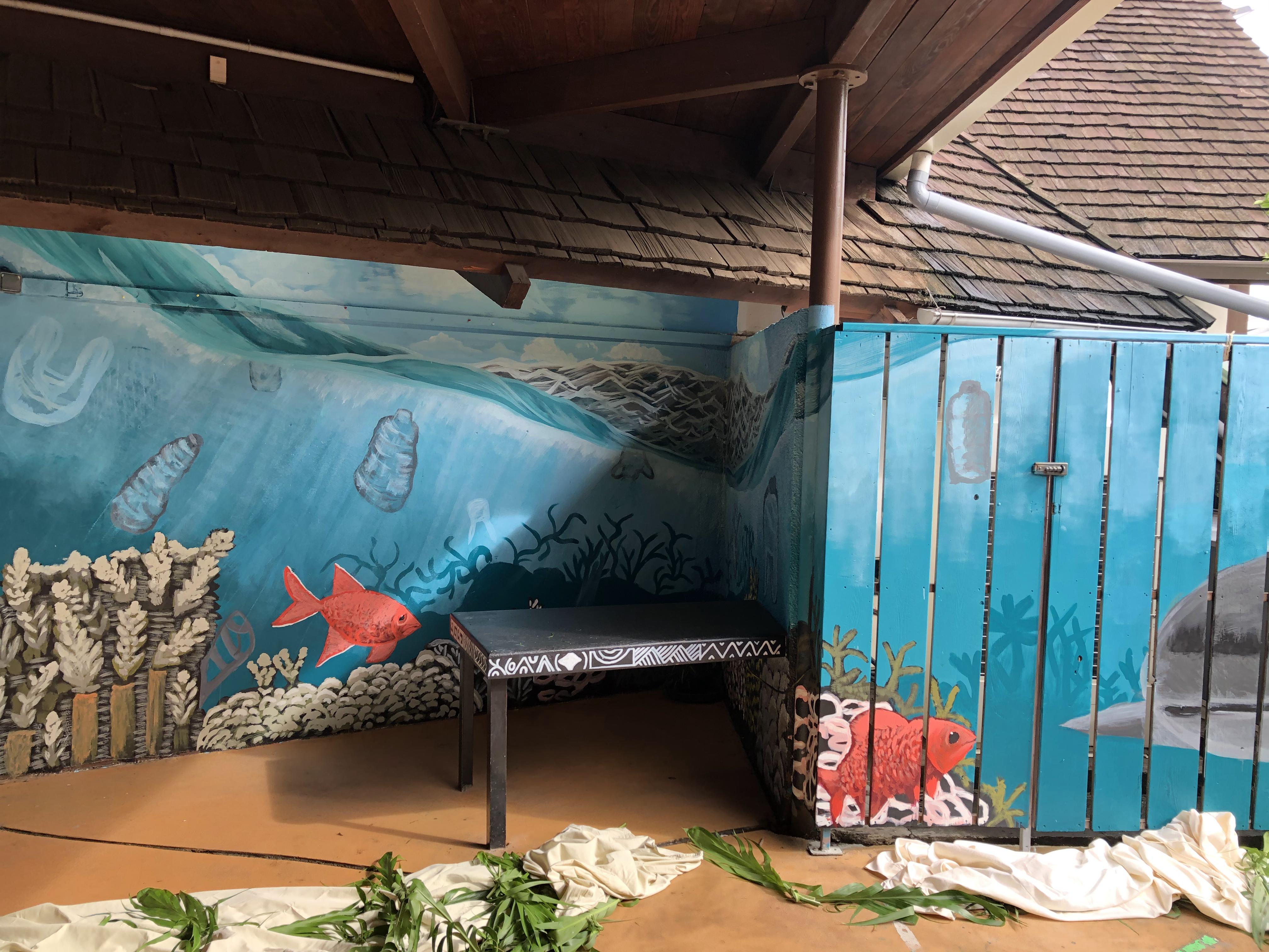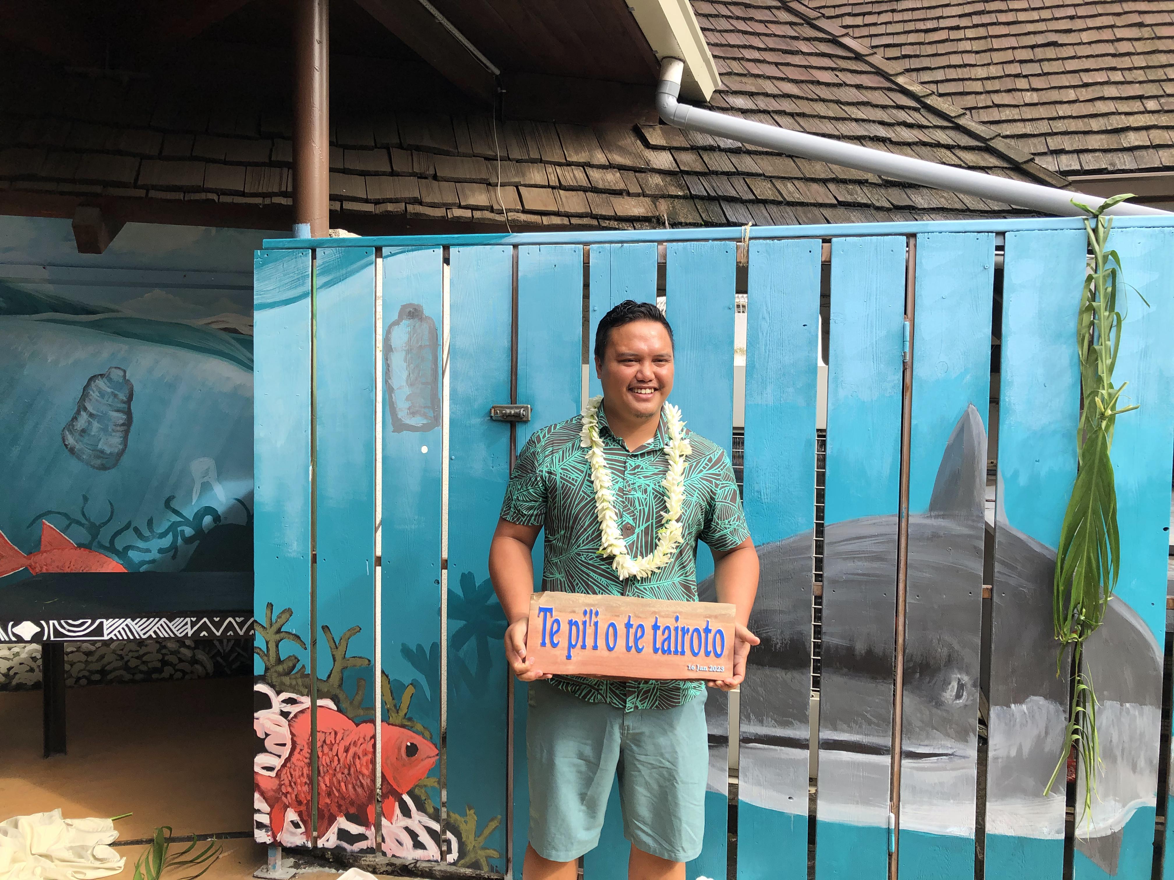 “On a l’habitude de voir des fresques avec de belles choses, comme des fleurs de la végétation, des fonds marins. On a fait exprès de mettre l’accent sur les déchets pour montrer que le fait qu’il y est des déchets dans l’eau et sur la terre, ce n'est pas beau à voir. On a appelé cette fresque “l’appel du lagon”, “Te pi’i o te tairoto”. C’est pour interpeller l’humain sur les gestes quotidiens qui peuvent être mis en place pour limiter la pollution des espaces marins. Ce sont eux qui ont développé tout l’aspect créativité, moi je les ai juste guidés sur l’aspect technique.”
