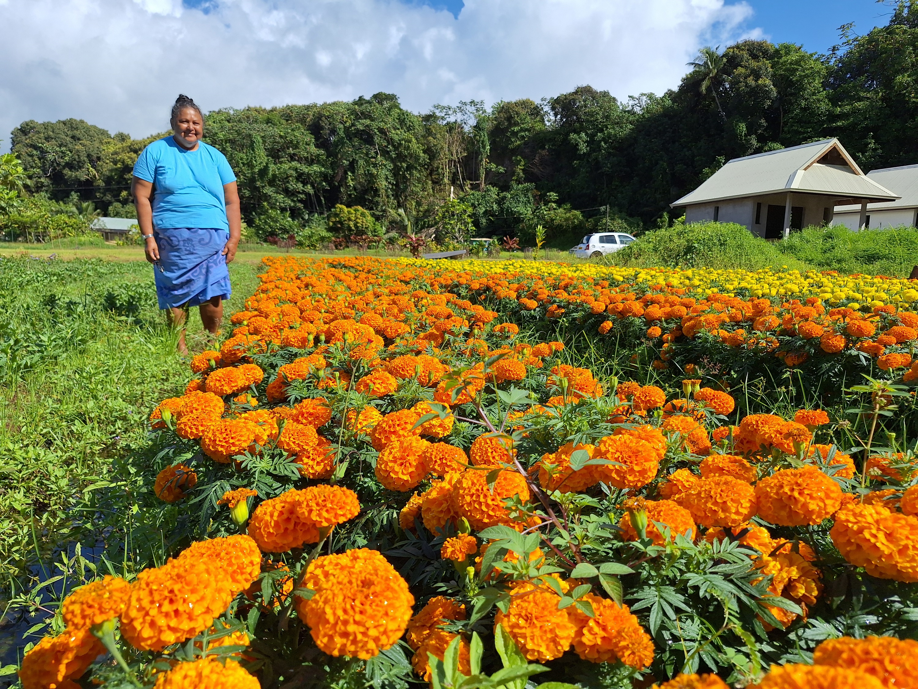 Tahiti, le 21 octobre 2024 – C’est la dernière ligne droite pour les horticulteurs. Maraîchère à Toahotu, Dolorès Picard-Utia met les concombres et les tomates de côté dès le mois de juin pour semer des œillets d’Inde et des marguerites de toutes les couleurs. Malgré les aléas météorologiques, les fleurs représentent plus de la moitié de son revenu annuel.