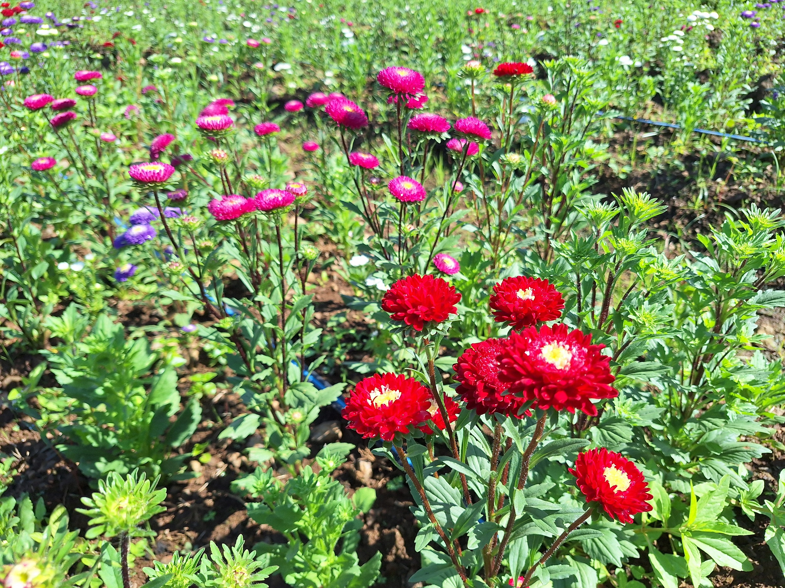 “On sème à partir du mois de juin, car les fleurs fleurissent sous trois à cinq mois. Il faut bien calculer ! Là, j’ai semé en juillet : j’ai été prise par le temps, car je m’occupais de mon papa, mais ça devrait aller”, confie-t-elle, à la faveur du retour du soleil. “Cette année, c’est un peu dur : la météo n’est pas favorable. J’ai perdu pas mal de fleurs, qui ont pourri à cause de la pluie. On plante sur des buttes pour faciliter l’écoulement de l’eau, mais on ne peut pas faire plus.”