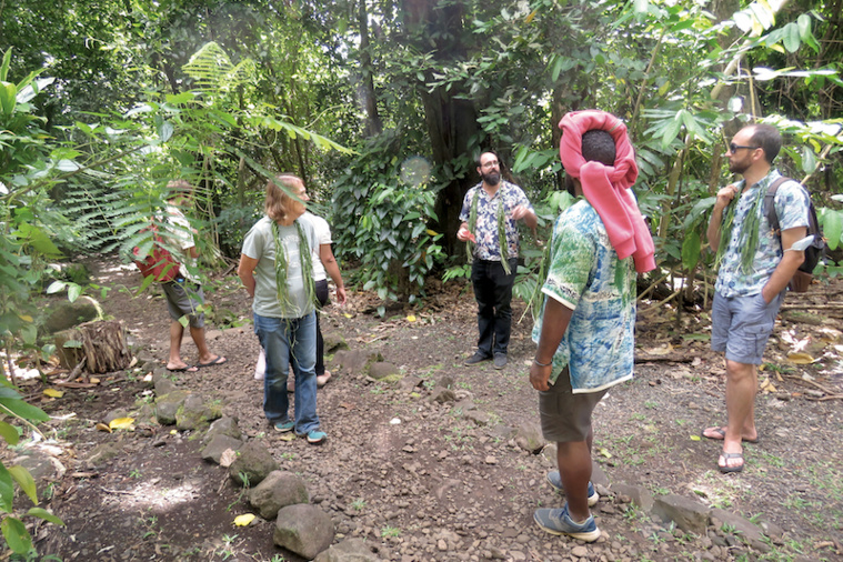 Les visiteurs se sont ensuite rendus sur les hauteurs de la vallée de Opunohu afin de découvrir quelques marae. Ils en ont profité pour découvrir les différentes plantes indigènes ainsi que celles introduites par les navigateurs polynésiens puis européens dans le passé. Après un bon mā'a tahiti en milieu de journée au Fare Natura, les chercheurs ont cette fois-ci fait la visite de l’écomusée afin notamment de voir comment celui-ci fait le lien entre les savoirs scientifiques et les savoirs culturels. La journée s’est terminée à l’amphithéâtre Fare Ite du Criobe par une séance de partage sur la thématique de l’utilisation de la langue tahitienne dans le partage des connaissances culturelles et scientifiques.