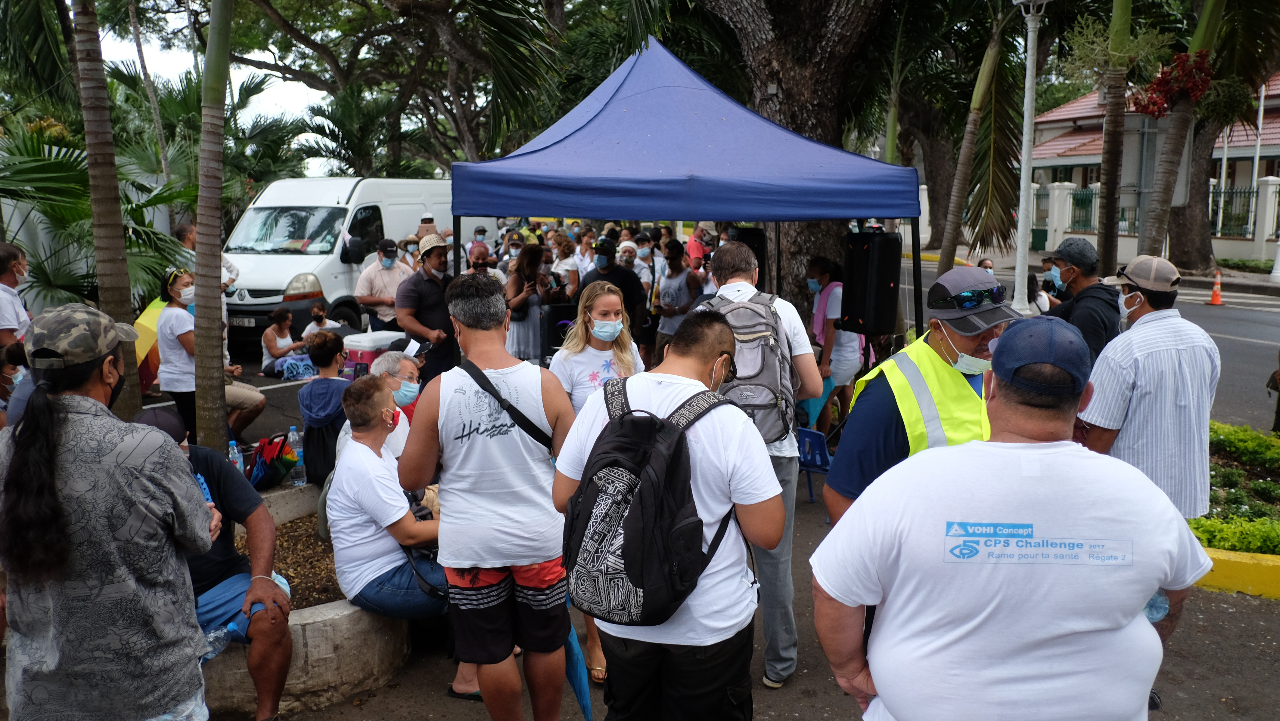 Nouvelle manifestation contre l’obligation vaccinale, mercredi matin, devant la présidence. Toujours à l’appel du collectif citoyen Te ora o te fenua, avec le soutien du collectif Nuna’a a ti’a. Mais cette fois-ci bien moins suivie que samedi, avec autour de 120 personnes. Si ce week-end l’enjeu était de manifester contre une vaccination obligatoire dans le cadre de la gestion de la crise Covid, mercredi le but était d’obtenir audience auprès du gouvernement. Avec foi dans son pouvoir de suspendre la loi du Pays sans attendre.