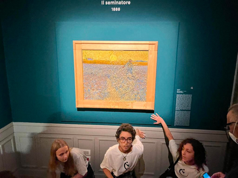 Rome, Italie | AFP | vendredi 04/11/2022 - Des militants écologistes ont projeté vendredi à Rome de la soupe sur un Van Gogh protégé par une vitre pour attirer l'attention sur le changement climatique, une action aussitôt condamnée comme un "acte ignoble" par le ministre de la Culture.