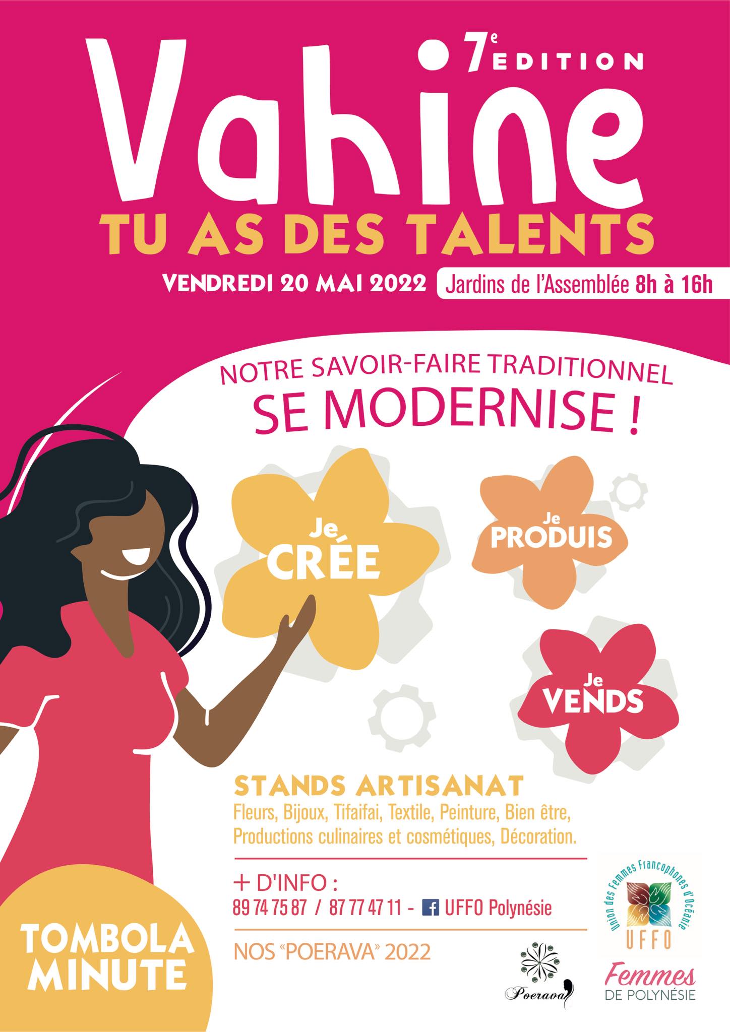TAHITI, le 19 mai 2022 - L’Uffo-Polynésie organise ce vendredi pour la 7e fois l’événement intitulé Vahine tu as des talents dans les jardins de Tarahoi. L’objectif ? Promouvoir l’autonomisation des femmes polynésiennes en les encourageant dans leurs initiatives économiques, sources d’indépendance financière et de réalisations personnelles.