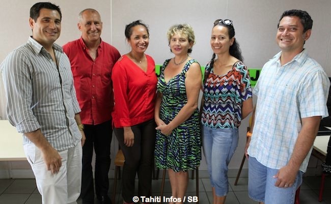 PIRAE, le 29 octobre 2014. Les intervenants de la Maat et leur responsable Gérard Dubois ont voulu remercier Air Tahiti Nui pour le partenariat mis en œuvre dans le cadre de cette mission d’aide et d’assistance technique, en organisant une collation à l’IJSPF. La Maat est une mission de l’Etat français, que Tahiti Infos avait déjà évoqué en mars dernier qui consiste à former des cadres techniques fédéraux, payés par l’Etat et le Pays, qui seront les chevilles ouvrières du développement du sport en Polynésie.