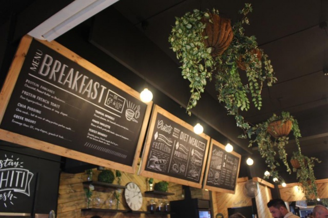 Situé à côté du marché, Diet Food tient ses promesses. Le mobilier tout en bois, la lumière tamisée, l’espace feutré coupe net l’agitation qui règne en ville. Le snack est un espace dans lequel se reposer le temps d’un repas.