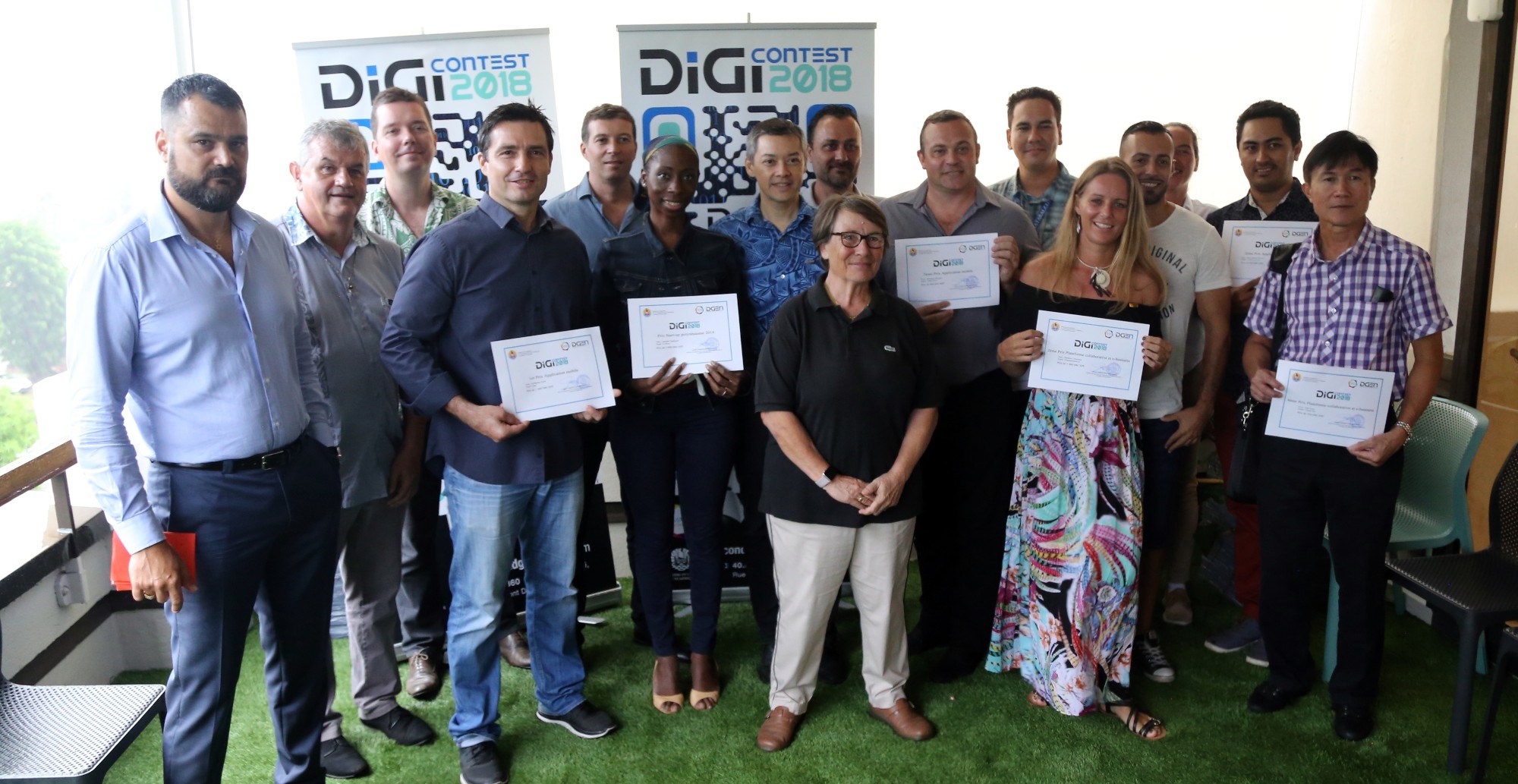 Les gagnants du DigiContest 2018, dont Jennifer Tchakouté qui avait obtenu le Prix de la start-up 2018 pour son site C Reva. Cette récompense et la légitimité qu'elle lui a apportée l'ont aidée à développer son entreprise. Le prix a été reconduit cette année. (crédit photo : DGEN).