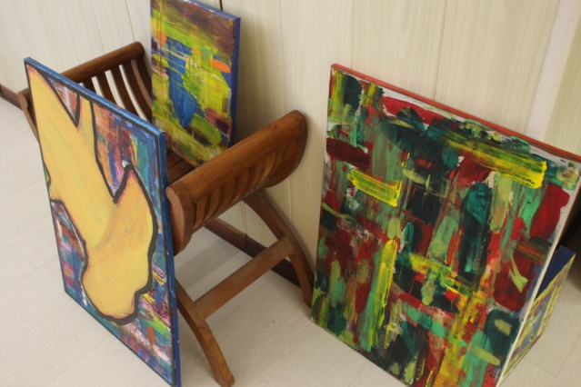 Joseph, lui, a regagné son atelier. Certaines toiles sont arrivées nues, sans attache et donc sans chance de pouvoir être fixées sur un mur. "On leur donne un coup de main."