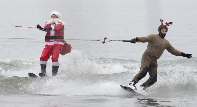 Des illuminations géantes en Croatie, des policiers brésiliens costumés pour la bonne cause dans les favelas, des skieuses en bikini en Chine, un père Noël et un de ses rennes en Jet-Ski. Voici dix images insolites de Noël venues du monde entier.