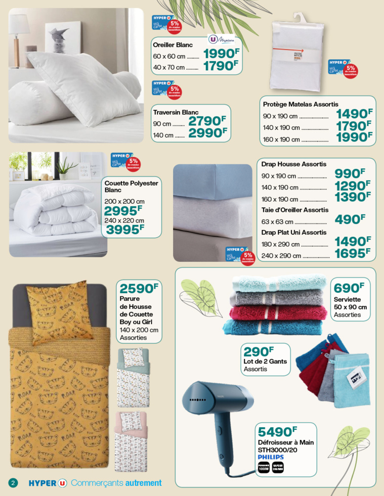 Notre astuce pour renouveler la déco de la maison sans trop dépenser : on change de linge de maison et toute l’atmosphère de notre fare se transforme ! Parures de lit, draps de bain... On profite des offres promotionnelles du nouveau catalogue Hyper U pour donner un petit coup de frais à notre intérieur.