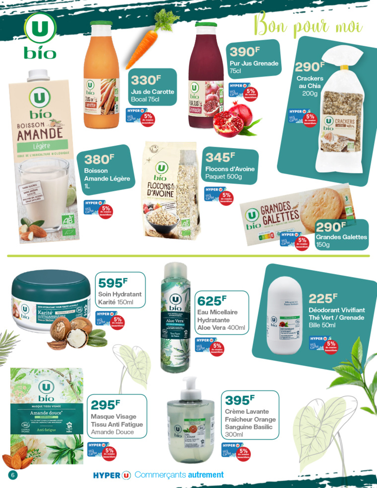 Les produits bios sont globalement meilleurs pour la santé car ils contiennent moins de pesticides et ont une qualité nutritionnelle souvent supérieure à ceux issus de l'agriculture conventionnelle. Découvrez toutes les promotions sur les produits bios dans votre nouveau catalogue Hyper U.