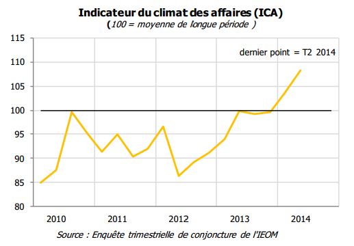 Avec un indicateur proche de 110 (la moyenne de longue période est à 100), les chiffres sont très bons : « L’indicateur du climat des affaires (ICA) progresse à nouveau au deuxième trimestre 2014 (+4,7 points) et s’établit nettement au-dessus de sa moyenne de longue période, confirmant ainsi la tendance des trimestres précédents » explique l’Institut dans sa note de conjoncture pour le deuxième trimestre (fichier pdf).