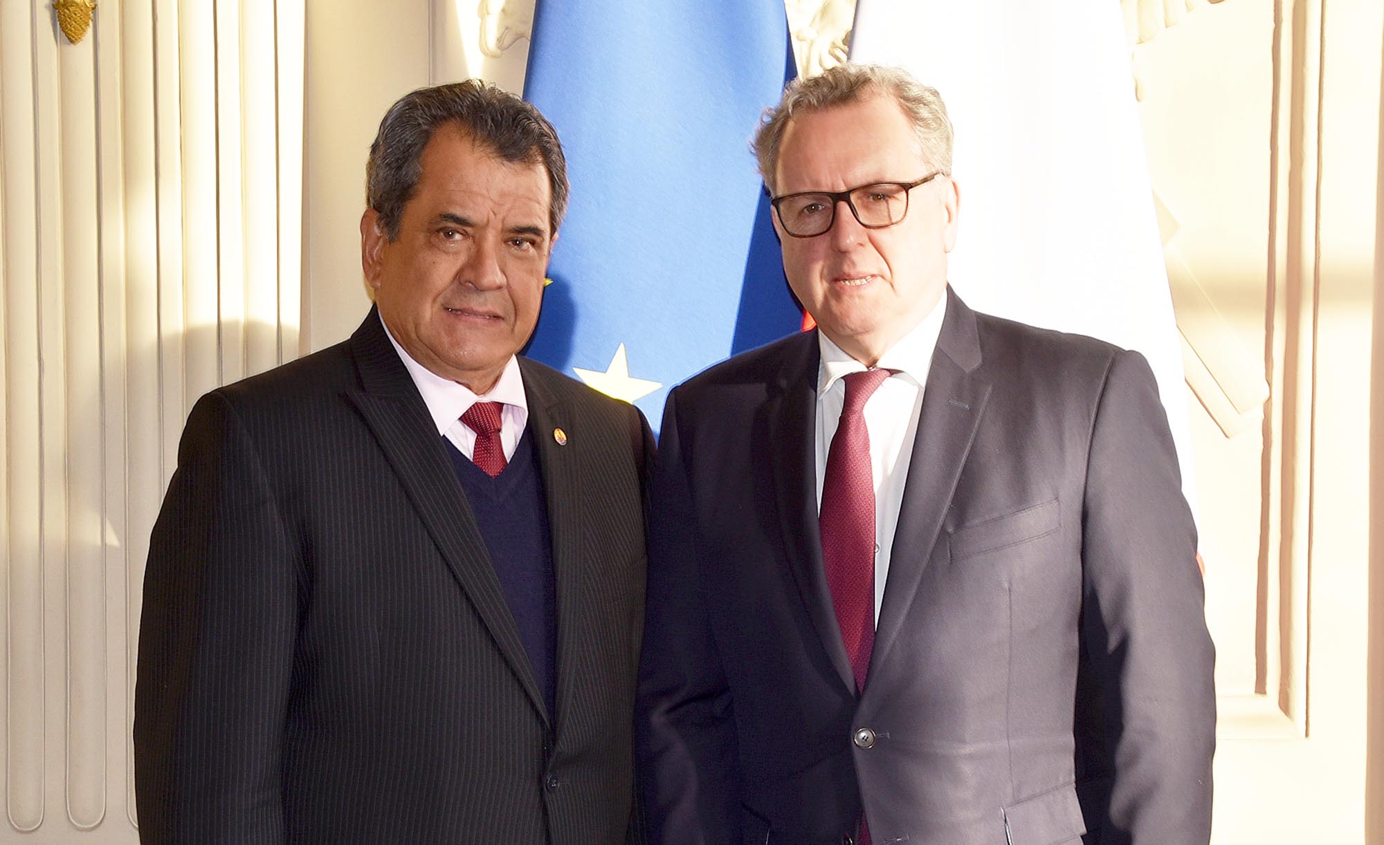 PARIS, le 12 février 2019. Le président du Pays, Edouard Fritch, accompagné de Gaston Tong Sang, président de l’Assemblée de la Polynésie française, a eu un entretien, mardi, à l’Hôtel de Lassay, avec Richard Ferrand, président de l’Assemblée nationale. Au cœur des discussions : le toilettage du statut.