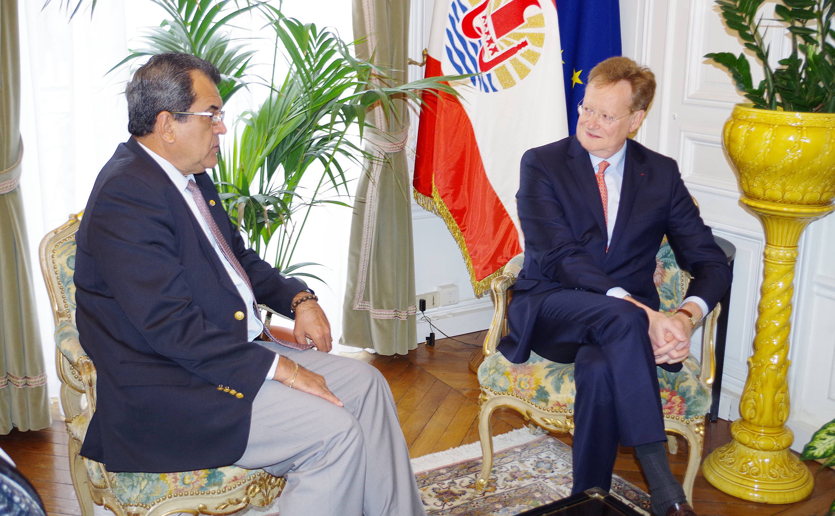Edouard Fritch en compagnie de René Bidal, le nouveau haut-commissaire de la République en Polynésie française.