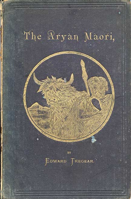 Ce n’est qu’à partir de cette union que Tregear réintégra en quelque sorte la société néo-zélandaise en trouvant un emploi stable dans un bureau à New Plymouth, en charge de dessiner des cartes. Mais il était loin d’avoir oublié sa décennie de contacts étroits avec les Maoris dont il resta proche. Et c’est à cette époque qu’il consacra son temps libre à la rédaction d’un livre pour le moins surprenant, “The Aryan Maori” (sorti de presse en 1885). Dans cet ouvrage, le spécialiste des Maoris qu’est indéniablement Tregear “part en vrille” comme on le dirait aujourd’hui en appuyant toutes ses connaissances sur un principe qu’il prétendait avoir découvert : la langue, la mythologie, la culture maories étaient proches des langues, cultures et mythologies de nombreuses régions européennes. Or l’Europe a été peuplée par des peuples aryens installés entre la mer Caspienne et les contreforts de l’Himalaya (les versants nord). Il y a quatre mille ans environ, une partie de ce peuple aurait migré vers l’actuelle Europe, l’autre vers l’Asie du Sud-Est puis les îles du Pacifique Sud, via la Perse et l’Inde.