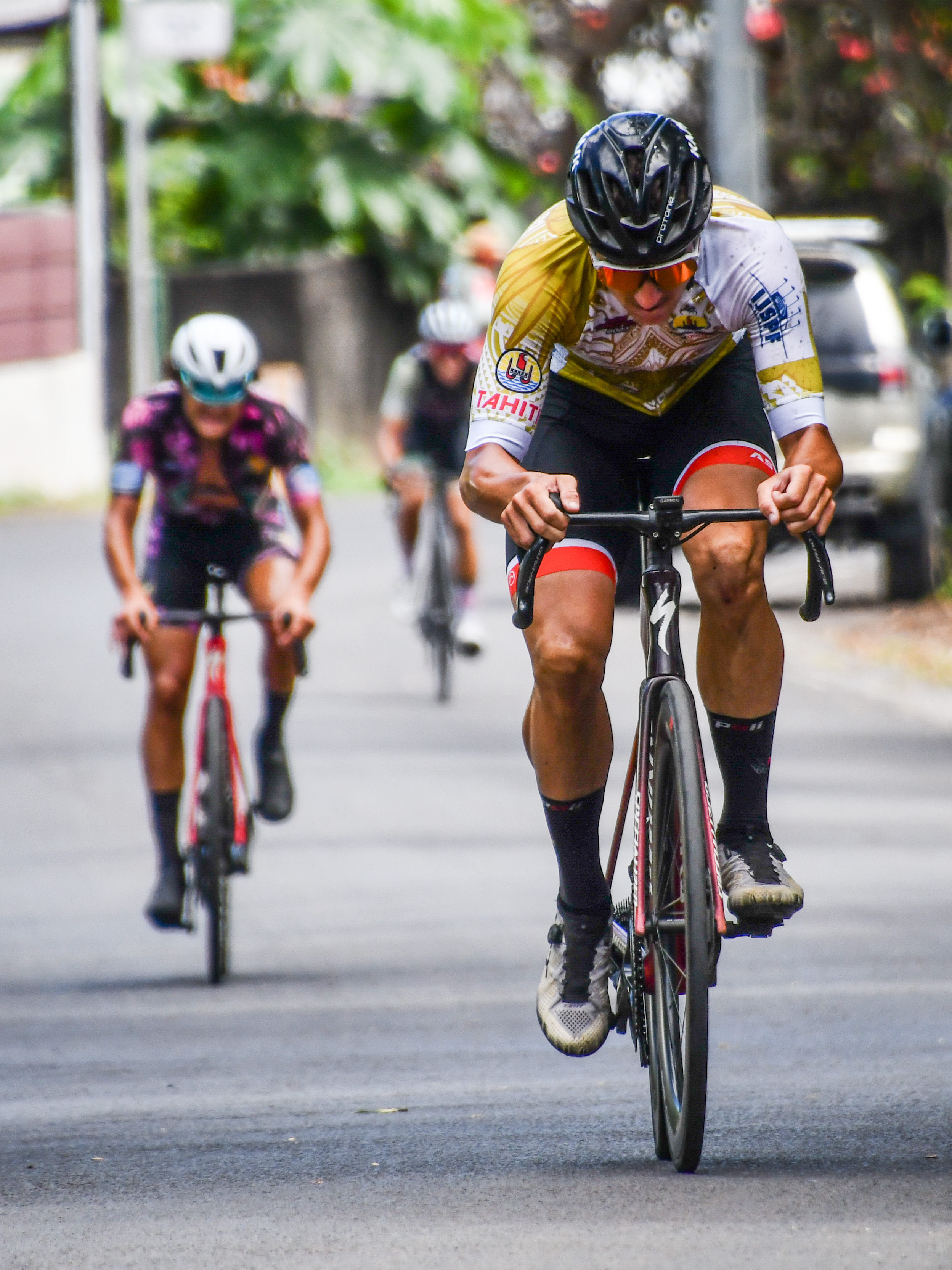 Les athlètes avaient rendez-vous tôt, ce mercredi matin, à la mairie de Pirae, pour le départ de la troisième étape du Tour Tahiti Nui 2023. Une épreuve très attendue par les différents cyclistes puisqu'elle proposait un relief plus exigeant que les deux premières épreuves, et donc, davantage d'opportunités de creuser des écarts entre les concurrents. Pour les hommes, la course s'étirait sur près de 120 km, allant de Pirae jusqu'à la mairie de Vairao, où les coureurs ont pu faire demi-tour direction les hauteurs de Pirae, pour un finish à l'entrée de la route du Belvédère. Scénario quasi identique pour les femmes qui ont cependant eu à faire demi-tour au 25e km à Tiarei, pour une course totale de 48 km.