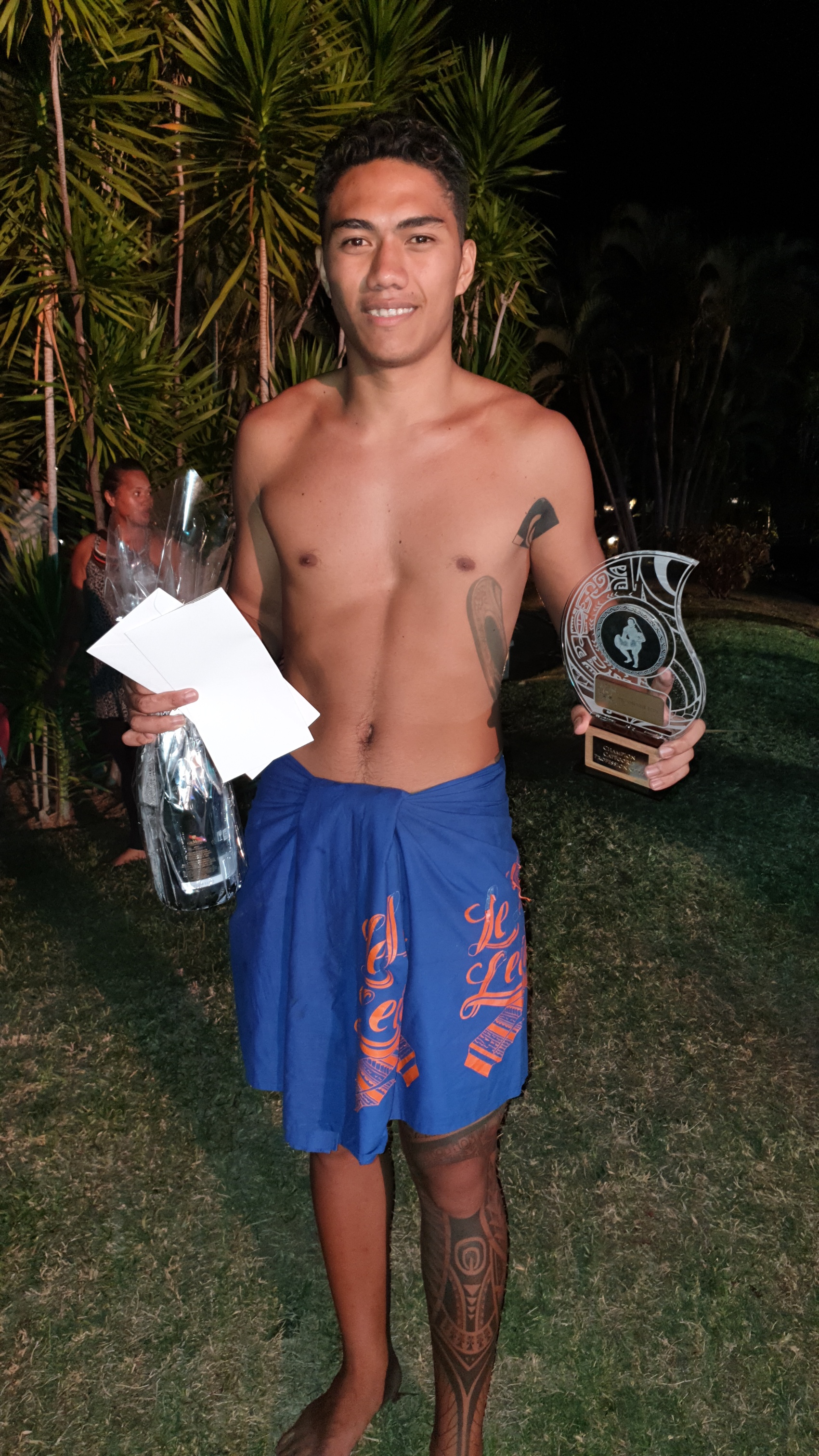 « Ça fait plaisir d’arriver sur la plus haute marche du podium. Et je pense que ce qui a fait la différence est le fait que j’ai joué avec le public, l’expression, la danse… Je voulais avoir des points sur tout. Maintenant, les répétitions seront plus intenses que ces derniers mois, parce qu’à Hawaii, le niveau est vraiment élevé. Ce sont souvent les hawaiens qui remportent le 1er prix, Joseph Cadousteau est le seul tahitien à avoir réussi à se hisser sur le podium. Du coup, je vais essayer de représenter Tahiti au mieux. »