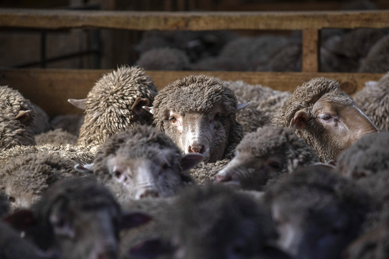 Dans le hangar où les ovins de race mérinos sont débarrassés de leur toison, le bruissement des tondeuses résonne au milieu d'un morceau de musique classique.