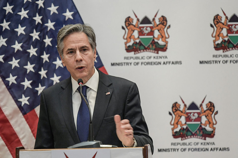 Nairobi, Kenya | AFP | mercredi 17/11/2021 - Le secrétaire d'Etat américain Antony Blinken a appelé les Africains à rester vigilants face aux menaces croissantes contre la démocratie, en ouverture de sa tournée africaine mercredi au Kenya, où il devrait également évoquer le conflit qui ravage l'Ethiopie voisine.