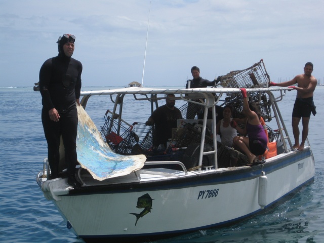 Pour la cinquième année consécutive, l’association de pêcheurs sous marin Tamari’i hopu na raro nō Puna’auia a organisé en partenariat avec la mairie une journée de nettoyage du lagon. Les bénévoles ,soit entre 80 et 100 personnes et 7 bateaux, ont bien répondu à l’appel lancé par le président Heiava TEATA pour nettoyer la même zone que les années passées (du Captain Blight au Mc Donald).