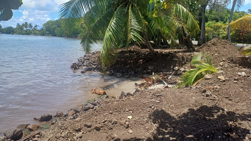 Un chaos qui se traduit par un incident grave en août dernier : un bloc de pierre dévalant le chantier a terminé sa course dans la propriété d'une riveraine. 4 000 m³ de déblais ont été déversés en bord de rivière, sur un site instable et n'appartenant pas à Jean-Michel Monot. Pire encore, une partie des remblais aurait fini directement dans le lagon. “Ils ont tout simplement déposé des remblais sur un terrain qui ne leur appartient pas, en bord de rivière et du lagon, sans autorisation”, dénonce ce membre de la fédération Tāhei ‘Autī ia Moorea.