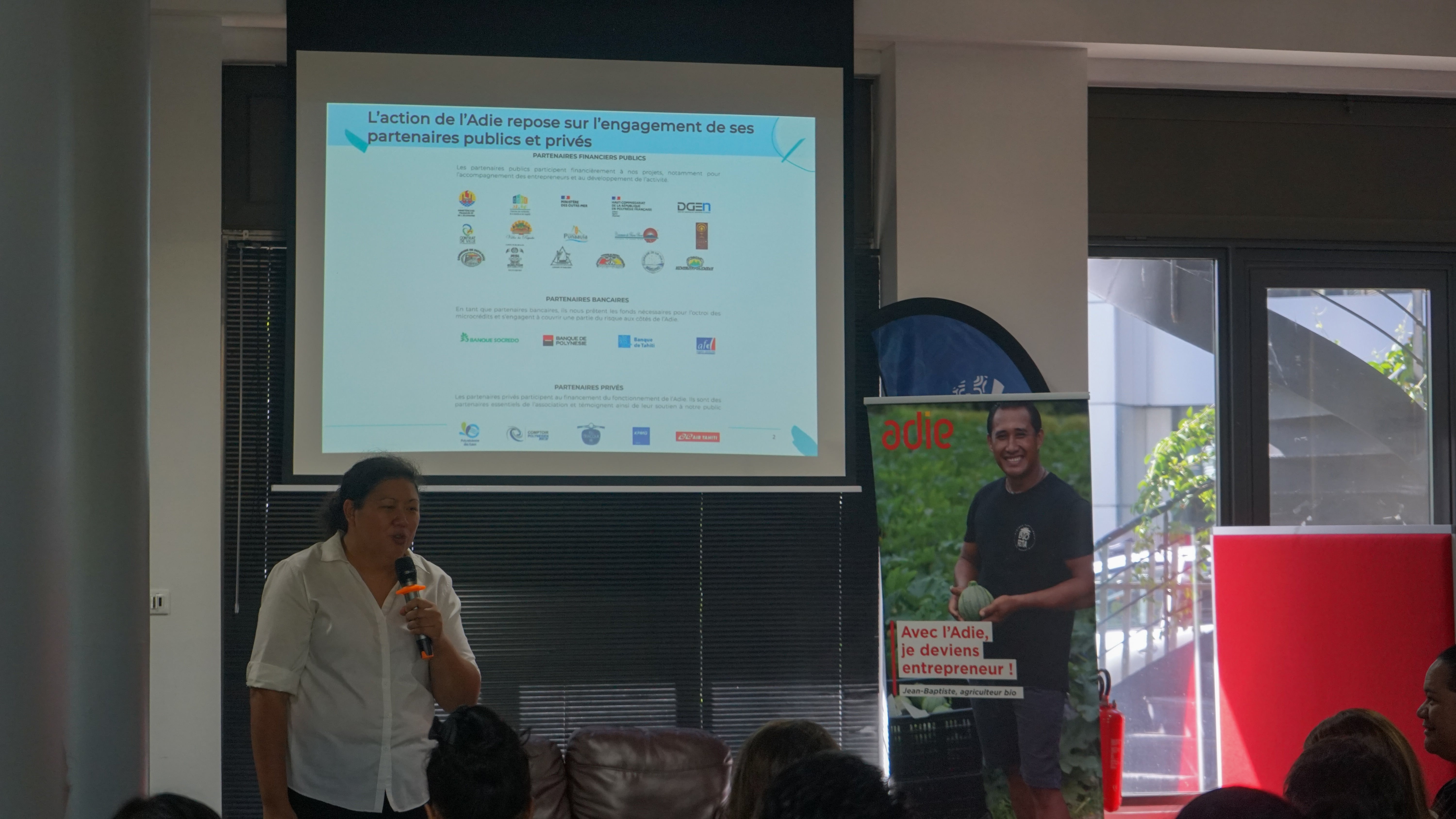 “Nous ne sommes pas une banque”, rappelle au micro Wendy Mou Kui, directrice de l’Adie en Polynésie française. “Notre rôle, c’est de favoriser l’insertion. On est juste un instrument pour aider les gens qui n’y croyaient pas à réaliser leur rêve, leur projet professionnel.” L’Adie, Association pour le droit à l’initiative économique, a été créée en 1988. Aujourd’hui, cette nationale reconnue d’utilité publique se fait fort de faciliter l’accès à des prêts financiers pour les personnes exclues du système traditionnel et leur permettre ainsi de créer leur entreprise grâce à des microcrédits. En bref, donner un coup de pouce aux entrepreneurs de demain qui n’y croyaient pas hier.