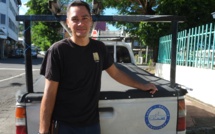 PAPEETE, le 3 avril 2017. Karel Luciani a reçu le deuxième prix dans la catégorie "économie circulaire" lors du concours de création et développement...