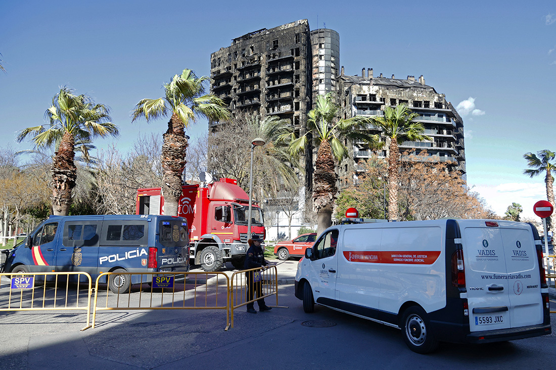 Valence, Espagne | AFP | vendredi 23/02/2024 - Les pompiers espagnols ont entamé vendredi dans l'immeuble de Valence (est) ravagé par un incendie foudroyant leurs difficiles recherches de 14 habitants encore portés disparus, alors que le bilan provisoire s'élève à quatre morts.