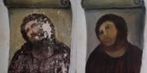 La chevelure aux allures de pelage de singe, la bouche effacée et le nez maladroitement stylisé nés sous son pinceau n'ont plus rien à voir avec l'original: un "Ecce Homo" aux traits fins coiffé d'une couronne d'épines peint par un artiste local, Elias Garcia Martinez.