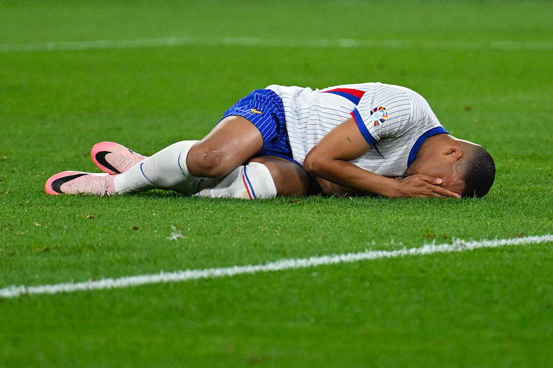 Düsseldorf, Allemagne | AFP | lundi 17/06/2024 - Kylian Mbappé a été de tous les bons et... mauvais coups lundi contre l'Autriche, provoquant le but contre son camp qui a permis à la France de commencer l'Euro-2024 par une victoire (1-0), mais se fracturant aussi le nez en fin de match, problématique pour la suite.
