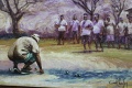 Des mois durant, il réfléchit à son thème. Il prend des notes, construit les tableaux dans sa tête. Dans son processus de création c’est cette phase qui prend le plus de temps. Ensuite, lorsqu’il est décidé, il laisse courir sa main sur la toile. Les couleurs "viennent en faisant".