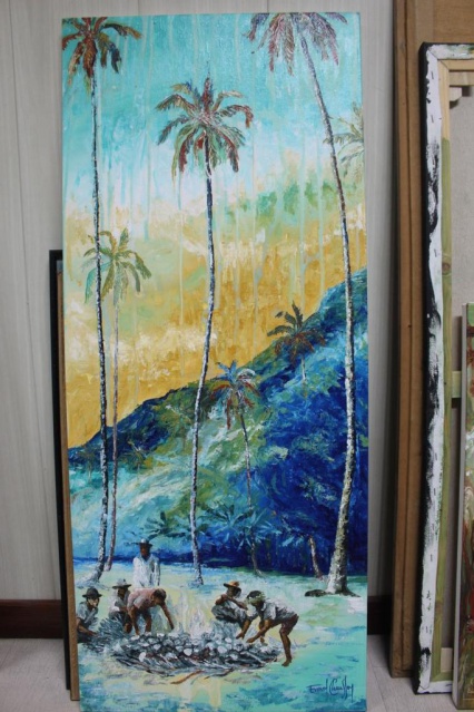 TAHITI, le 27 janvier 2021 - Le thème de la nouvelle exposition d’Evrard Chaussoy est Putuputu. Ce qui signifie se rassembler. Avec elle, l’artiste invite les visiteurs à vivre une expérience immersive, à se retrouver et s’évader, ensemble, le temps de leur passage. Chaque tableau est une fenêtre ouverte sur des scènes de vie polynésiennes, des bouffées d’oxygène pour se faire plaisir.