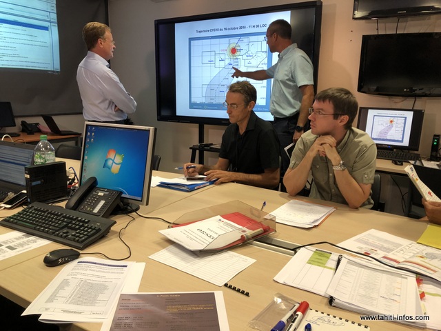 PAPEETE, le 16 octobre 2018 - Chaque année, le Haut-commissariat met en place un exercice cyclone afin de mieux coordonner l'ensemble des acteurs qui se mobiliseront en cas de catastrophes naturelles au fenua. Services de l’État, du pays et les associations de protection aux personnes et aux biens se sont donc retrouvés mardi pour la simulation d'un cyclone aux Tuamotu.